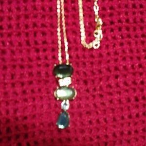 3 GREEN GEM STONES FASHION JEWELRY 18 KT GOLD PLATED.