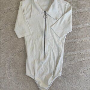 In great condition from the cult brand! 92% cotton, 8% spandex. Front exposed zipper closure with O-ring accent. Ribbed knit fabric. Bottom snap button closure. Made in USA.