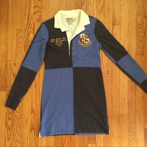 EUC. Rugby Ralph Lauren brand closed in 2004. Hard to find! Long sleeve. Dark blue and lighter blue patches. Straight cut. Hits about 2 inches above the knee on 5'6. Smoke and pet free home.