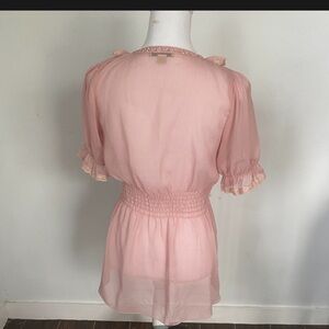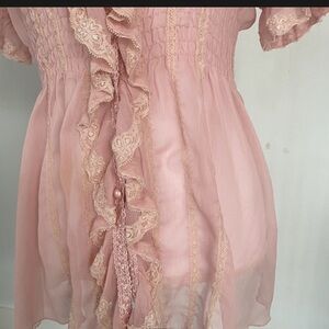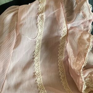 Super adorbs! pink lace blouse! In over all great condition did spot a flaw on the left side top, added in pics 8&9
