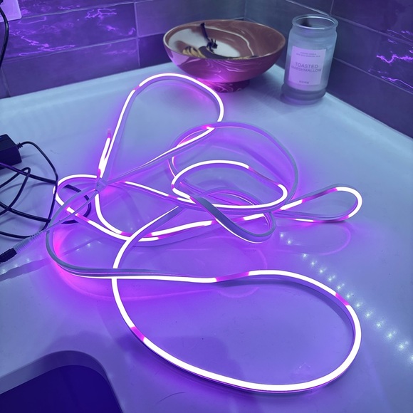 Perfect for adding a modern touch to any room. Neon pink rope light in great condition, only used for maybe a month. Selling with the adapter I purchased separately. Difficult to capture the actual color on camera, but it’s a beautiful neon hot pink.