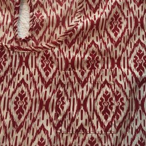 Perfect blouse for the office.. Comfy and breezy! It is longer on the back; with a pocket on the top right as shown in the pictures.