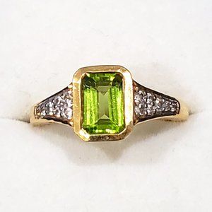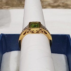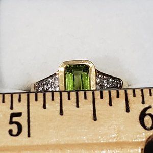 SOLD! Peridot & Zircon ring in 14K YG over 925SS