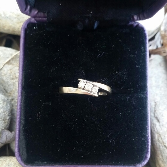 This sweet little vintage ring would be a great promise ring or Valentine's day gift. It is white gold (the reflection of what u was wearing makes it look yellow in one of the photos, but it is white). The diamonds measure aprox. 2+ mm each. Approx. Size 5.