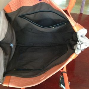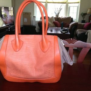 Super cute tote new with tags! Pretty orange embossed croc and grey suede. 100 percent authentic. Medium Prado tote