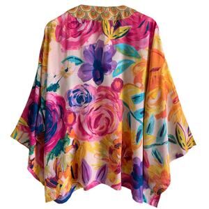 SOLD*** Powder Kimono Jacket Floral Frenzy Modal Boho Hippie Art to Wear