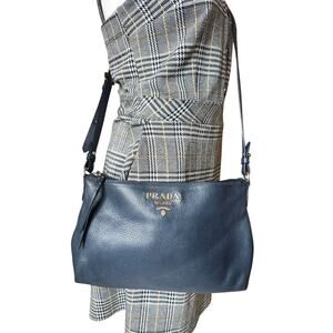 SOLD Prada Vitello Daino Crossbody Bag Navy pebbled calfskin leather