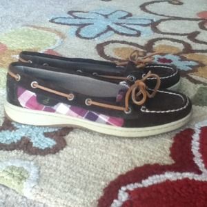 ****SOLD****These shoes have only been worn once and are in great condition! Brown leather with purple, pink, and white plaid detail. Size 8.