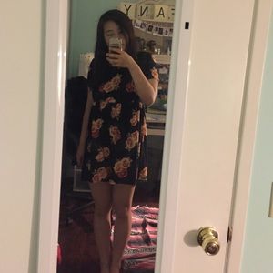 A cute rose printed dress that's perfect from upcoming Spring! It's thin and a bit high-low. There's a cute back detailing and this dress looks great with a denim jacket and some sandals. Only worn once.
