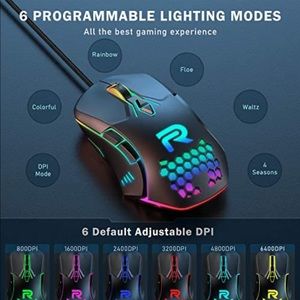 Gaming Mouse with 7 Programmable Buttons, Chroma RGB Backlight & 6400 Adjustable DPI, Ergonomic USB Computer Mouse with High Precision Sensor for Windows PC & Laptop Gamers.