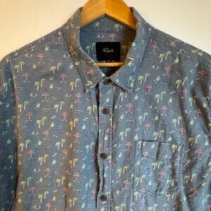 SOLD Rails Palm Tree Short Sleeve Button Down Shirt Casual Blue Size XXL Linen