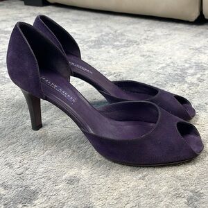 Ralph Lauren Purple Label Suede D’Orsay Heels Deep Purple Sz 9.5