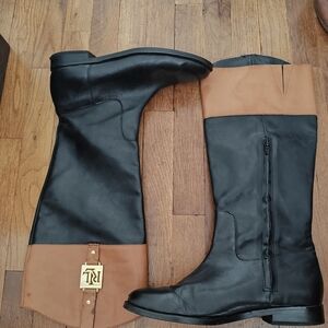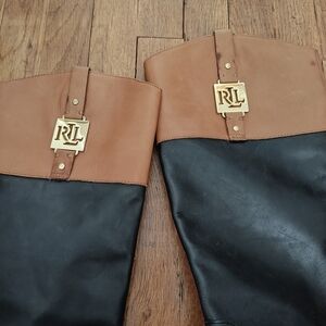 size 8 Ralph Lauren Riding Boots. They have some stains and spots on the outside, peeling/cracking on the inside because that material is not real leather (see photos).outside leather in good shape, no cracking from what I can see. Lots of life left.