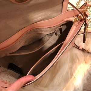 Light pink handbag with shoulder strap