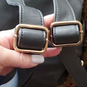 Beautiful grey soft leather Rampage backpack with gold buckle straps.Large roomy bag. Two side pockets and one large front pocket. Adjustable straps. Very sharp. Can be worn with anything. Can dress it up or down. Never used. Smoke free home. Offers ALWAYS welcomed