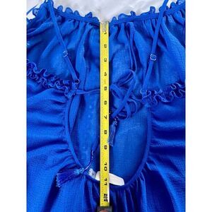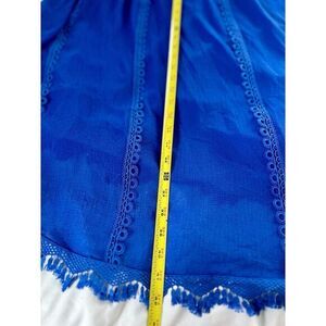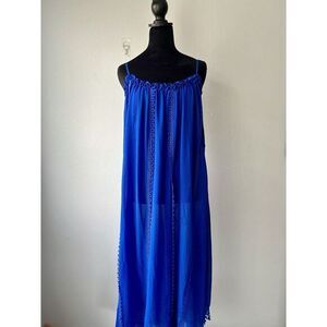 Details: Elevate your beach day ensemble with the Ramy Brook New York Rio Dress. This chic cover-up combines the ease of a swimsuit with the elegance of a dress, perfect for those seeking a stylish transition from poolside to dinner. In a stunning azure hue, it features a geometric pattern that catches the eye and a flattering drawstring waist that adjusts to your silhouette.