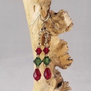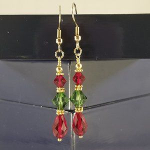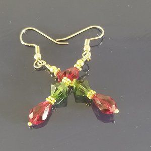 ***SOLD*** Red and Green Swarovski & Sterling Earrings