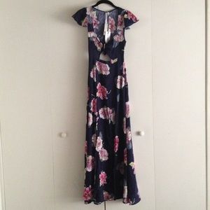 Reformed by Reformation for Urban Outfitters -Flora & Fauna floral maxi. It is navy blue with a vintage floral print and cutout details. Sold out. Worn two or three times. Size XS.