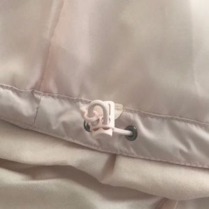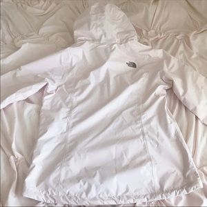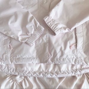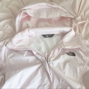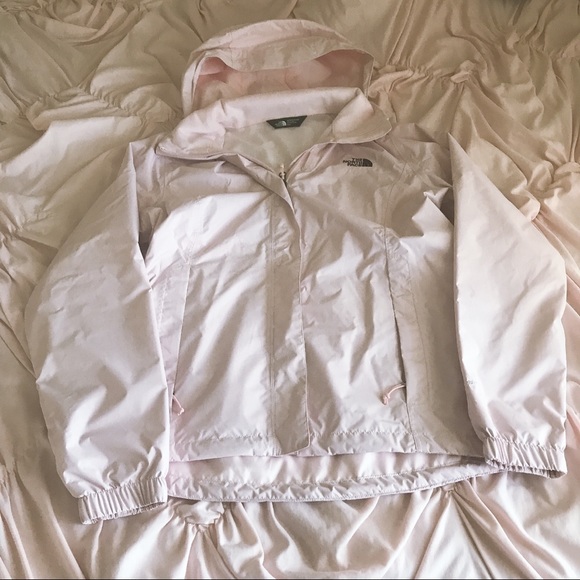 baby pink rain jacket / windbreaker with black accents and mesh lining by the north face. excellent condition.