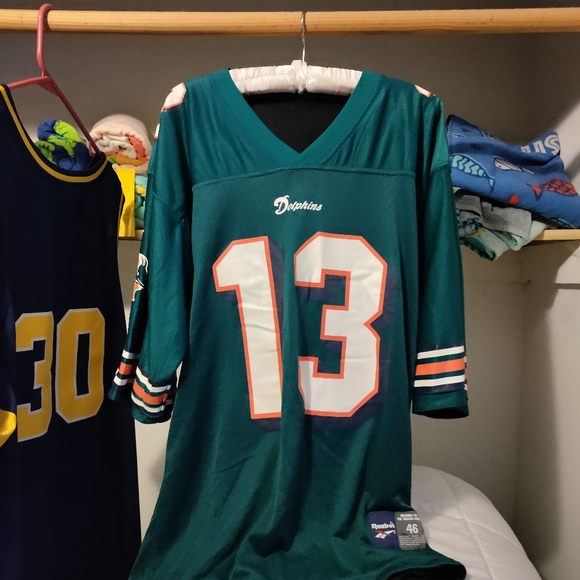 Reversible Reebok Dan Marino jersey. One side aqua other black. Size mens 46 (L)