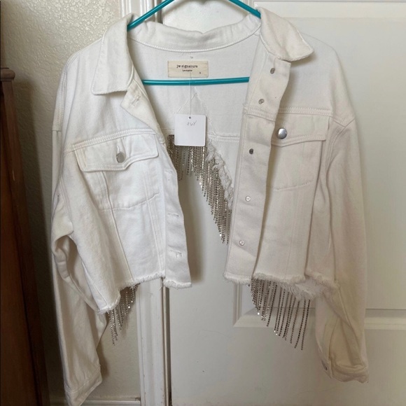 Over size small white jean rhinestone jacket new