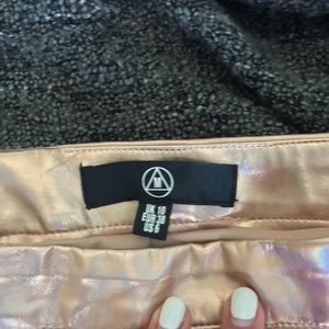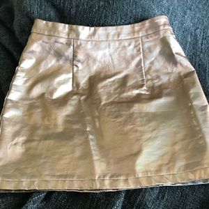 This is a cute rose gold metallic skirt. It's perfect for a night out. The skirt zips on the side. Only worn once for a birthday night out, in great condition!