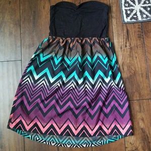 Selling Used Size Small Strapless Roxy Chevron Skater Dress. Very cute! Great for summer/going to the beach in.