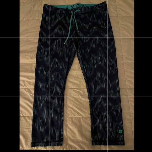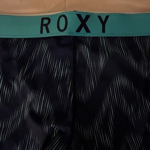 - drawstring waistband with roll over waist band that reads “Roxy” on the back