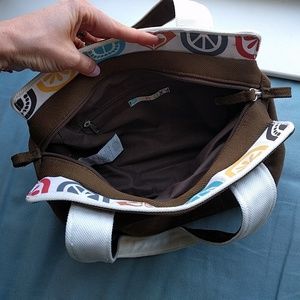 New Without Tags!!! Super cute, lightweight fabric bag! Brown with white buttons. One zipper pocket inside.