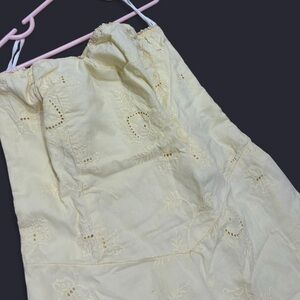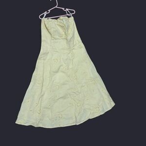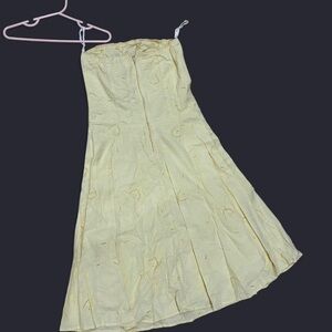 Yellow strapless dress. Pretty pointelle design throughout. Fits a small and maybe a smaller medium.