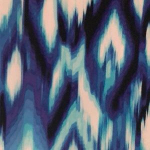 SOLD. Beautiful woman’s blouse Ikat pattern in blues/purple/black/white with ruching on the sides toward the hemline. Decorative beading around neckline. This is a relish that I sadly never wore. It was the wrong style for me but it is a beautiful blouse. Pet friendly nonsmoking home.