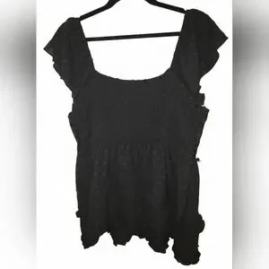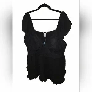 Black lace blouse. Features delicate lace details. Smocked back for prefect fit. 3x plus sized