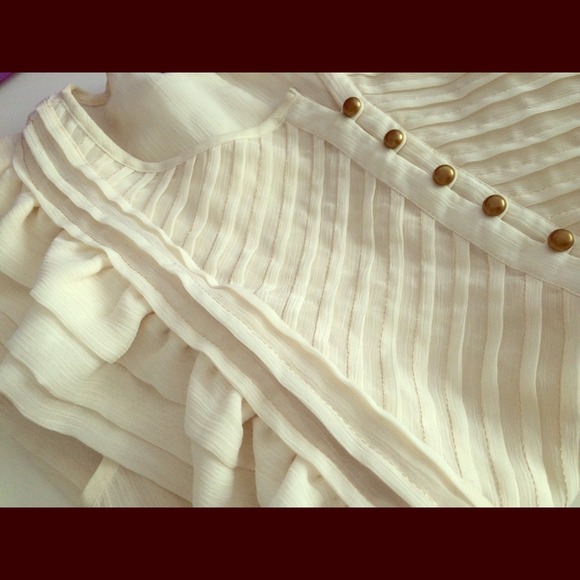 Super cute ruffle shirt. Comes down to the waist, had cute gold buttons going down the front.