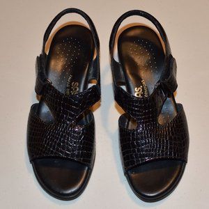 SOLD • SAS Suntimer Black Crocodile Slingback Sandals Embossed Size 6 1/2 W USA
