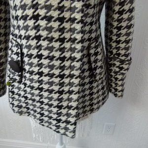 SOLD SOIA & KYO Houndstooth in Black / White/ gray coat jacket L missing button