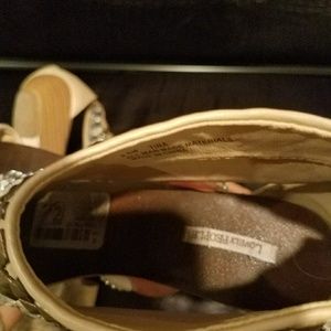 Dress these flat / wedge sandal with small heel up or down w/ jeans or dress.