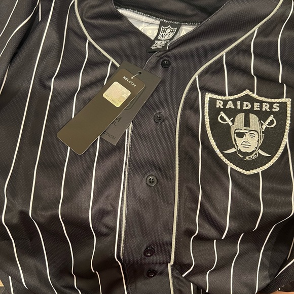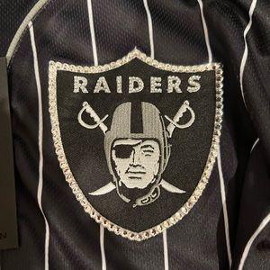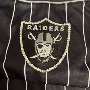 Bedazzle Las Vegas raiders baseball jersey style . Brand new . Rhinestones on raiders logo size L in men will fit M in woman