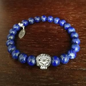 Leo by Saint Shadle is a simple bracelet made with 8mm lapis lazuli gemstones. It's a stretch bracelet made for the average size man's wrist ~7". You can request a custom size, usually takes longer to ship.