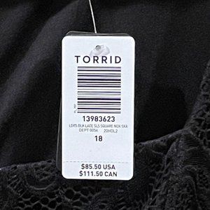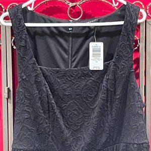 This stunning black lace dress from Torrid is a must-have addition to any wardrobe. The sleeveless design and round neckline give it a timeless, elegant look, while the pullover closure and knee-length hem make it perfect for any occasion, whether it's a wedding, cocktail party, or formal event. The fit and flare style is extremely flattering and comfortable, with stretch fabric that moves with you and accentuates your curves.