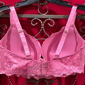 Spice up your lingerie collection with this gorgeous pink lace bra from Daisy Fuentes, made for women who value both comfort and style. This underwired push-up bra comes in size 40D, with normal straps that provide ample support. The padded cups enhance your cleavage, while the soft lace fabric feels gentle on your skin.