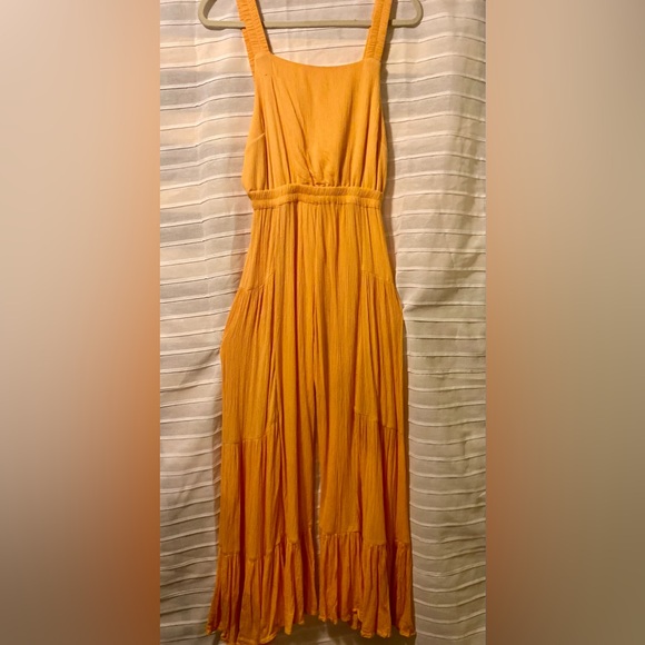 Beautiful soft sunny yellow jumper by Free People in XS but can fit Small as well due to the stretch and cut. New but I took the tags off and never wore this one. Can be worn with a long sleeve under..layer and have a really cute fall vibe!