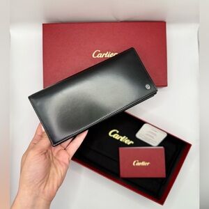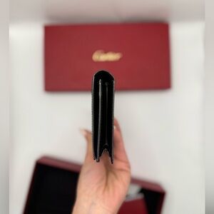 Elegant black leather wallet by Cartier. Comes with original box and card.