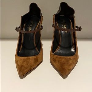 Saint Laurent Majorelle 105 convertible pumps are in great condition. It converts from a pump to a mule. The are minor scuffs and marks on the suede. The heels are intact.