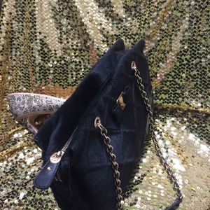 Black fur leather quilted ,Nero calf,Height 10.2 in🌹length 13.7in🌹width 3.9in🌹strap 15in🌹with gold/tone hardware brass. Interior zip pocket & phone slide pocket .