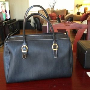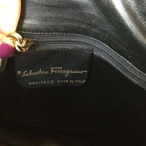 Sophisticated black Salvatore Ferragamo handbag. Tag registration number: AG212200. Interior is buttery soft leather. There is a very tiny white mark on the bottom of the bag.