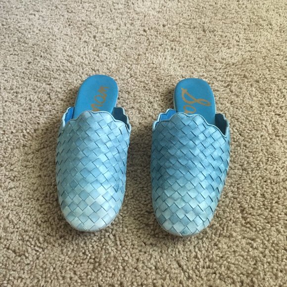Sam Edelman Katy mules in Moroccan Blue. Lightly worn. Experienced some fading when wet.