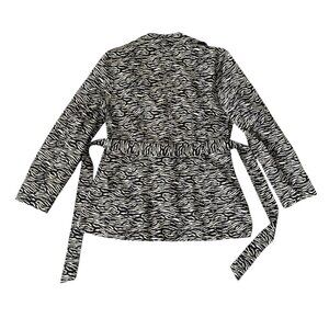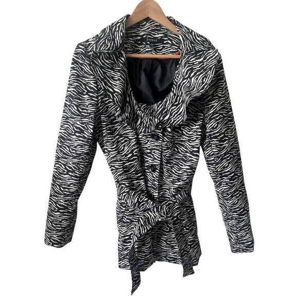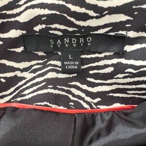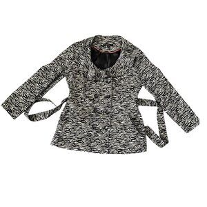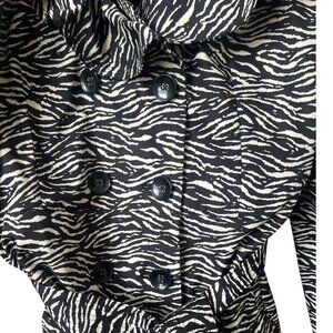 SOLD Sandro Studio Zebra Print Ruffle Collar Belted Trench Coat Large