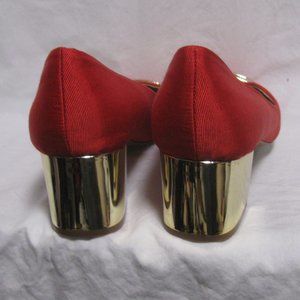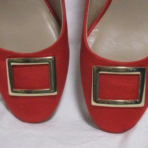 ***SOLD*** Scarlet Red Block Heel Pumps with Gold Buckle & Heels sz 9