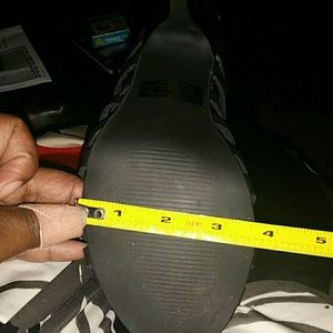 Show off those gams and turn heads! 4" heels. I wore these once and got so many compliments but I didnt make it through the whole day. My knees and back can't tolerate heels anymore so it's a wrap for me. These are sexy and would look great under most dresses. 100% vegan leather, rubber soles, so no slipping. Zips up the back. Size 8W. Widest part of sole is about 3 5/8" but thick calves are in luck! Top is about 19" around.