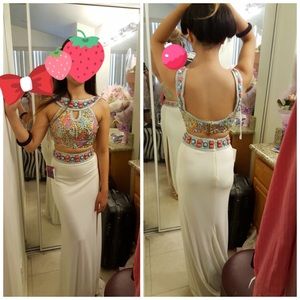 @clairegoff The dress was a display piece at the store I purchased it at, and had been tried on by girls. The bottom is a bit dirty. I actually just hand washed the bottom about an hour ago, so it is much cleaner now. I would recommend getting the dress dry cleaned if you want it to be super clean, but I have spot cleaned the dress, and it is currently air drying. The dress is missing, and has a few loose beads, but nothing that I would consider to be terribly noticeable.